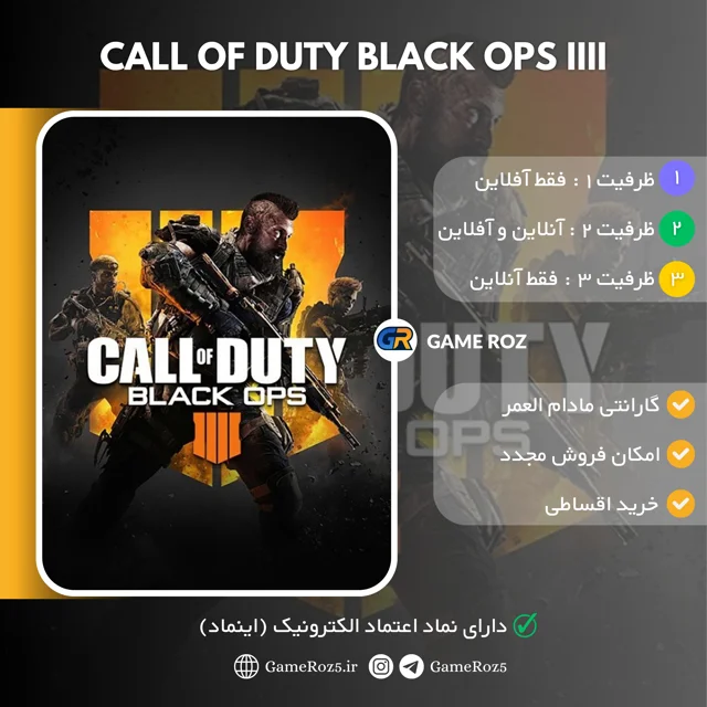 Call of Duty: Black Ops 4 یا به اختصار BO4، یکی از عناوین محبوب سری بازیهای Call of Duty است که در تاریخ 12 اکتبر 2018 توسط کمپانی Activision منتشر شد. این نسخه توسط استودیو Treyarch توسعه یافته و بهطور خاص برای کنسولهای PS4، Xbox One و رایانههای شخصی طراحی شده است.