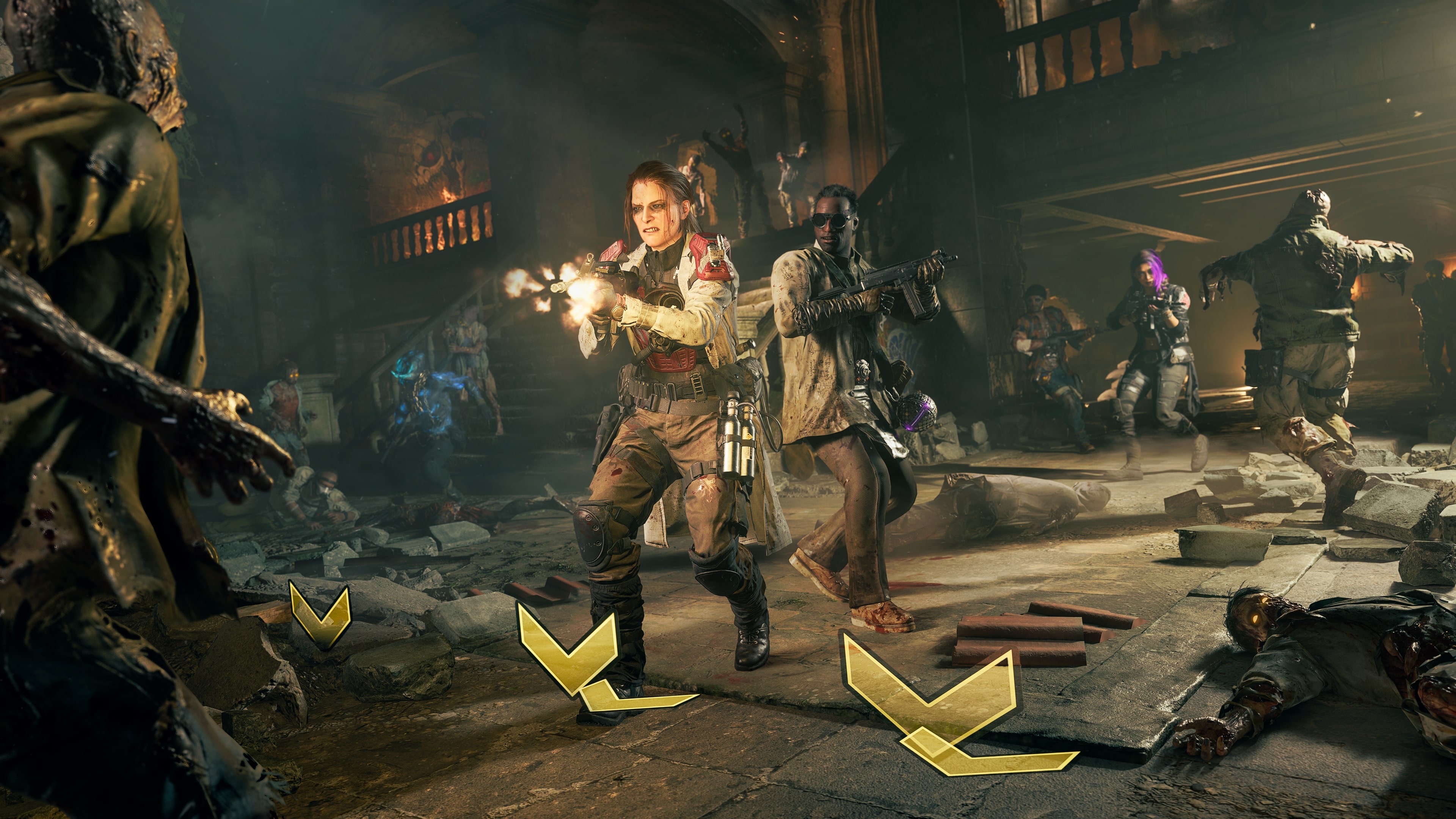 - حالت زامبی (Zombies) : حالت زامبی بهصورت کلاسیک و دور-محور بازگشته و شامل دو نقشه جدید در زمان عرضه است: Terminus و Liberty Falls. این حالت شامل ویژگیهایی مانند GobbleGums، ارزهای Essence و Salvage، و سیستم Augments برای ارتقاء مهارتها و تجهیزات است.