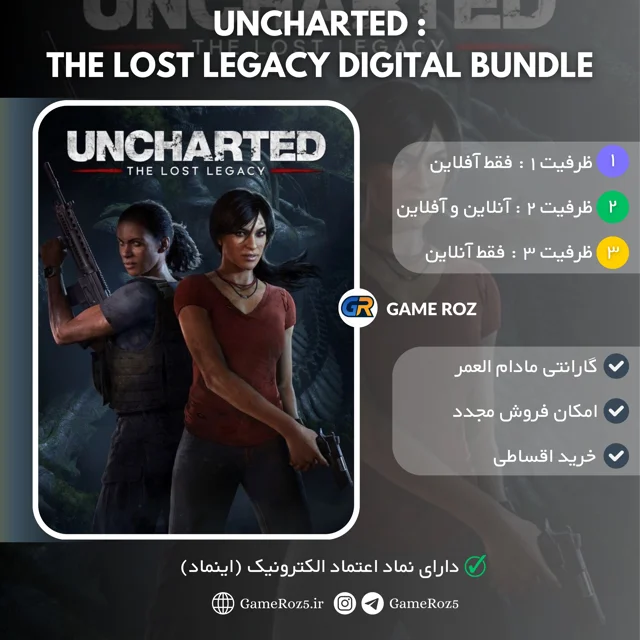 اگر از علاقهمندان به سری Uncharted هستید، بازی Uncharted: The Lost Legacy Digital Bundle یکی از جذابترین تجربههای ممکن در سبک اکشن ماجراجویی سوم شخص برای شماست. این نسخه فرعی از سری Uncharted، شما را وارد ماجراجویی پرهیجان و نفسگیری میکند که با داستانی مستقل، گیمپلی سینمایی و گرافیکی خیرهکننده، تجربهای بهیاد ماندنی رقم خواهد زد.